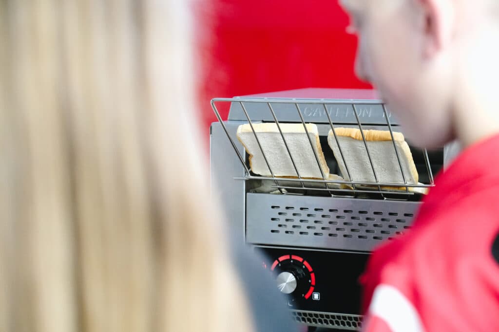 The new toaster has made a big difference. Previously, the team relied on multiple small toasters that couldn’t keep up with demand. Now, they can serve around 180 slices in just 25 minutes.